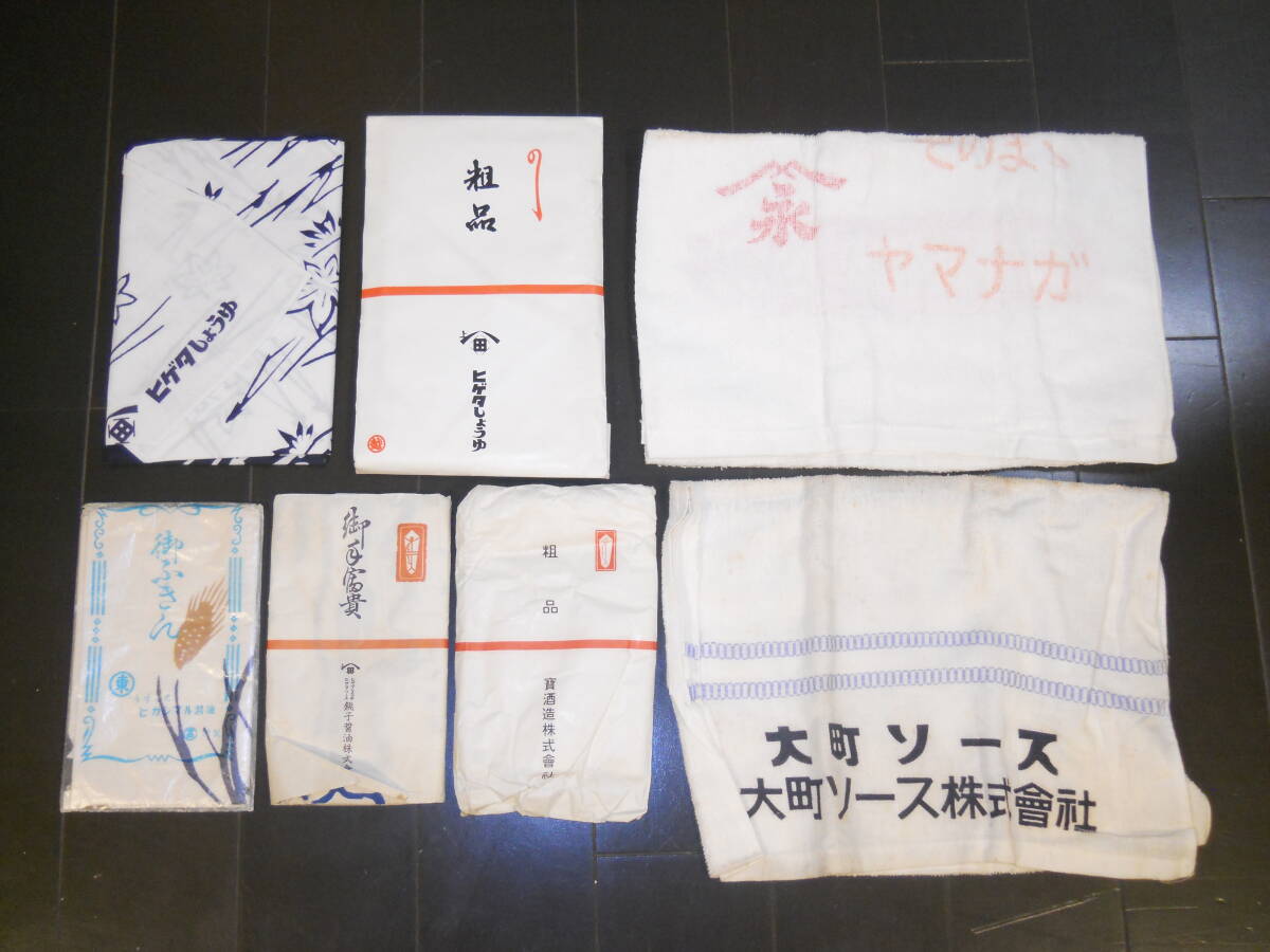 - ③手ぬぐい タオル まとめて6枚 ヒゲタしょうゆ 銚子醤油株式会社 ヒガシマルしょう油 寶酒造株式会社 大町ソース ヤマナガ 古布