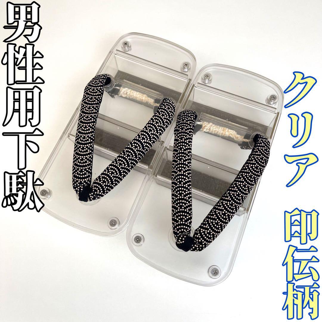 - 【着物と帯 時流】M53y◆男性用 下駄◆珍品 クリア 二枚歯 印伝柄 未使用品