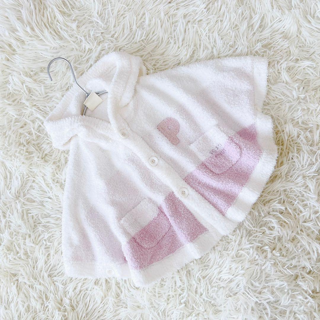 - 《ジェラートピケ》 (80-90) フード付きベビーポンチョ ロゴ刺 ふわふわ