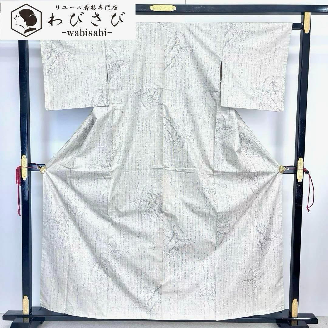 - 本場大島紬 白大島 カタス7マルキ 柳の木 灰白色 K-4092 着物 きもの kimono 和服 和装 中古 リサイクル着物 【送料無料】