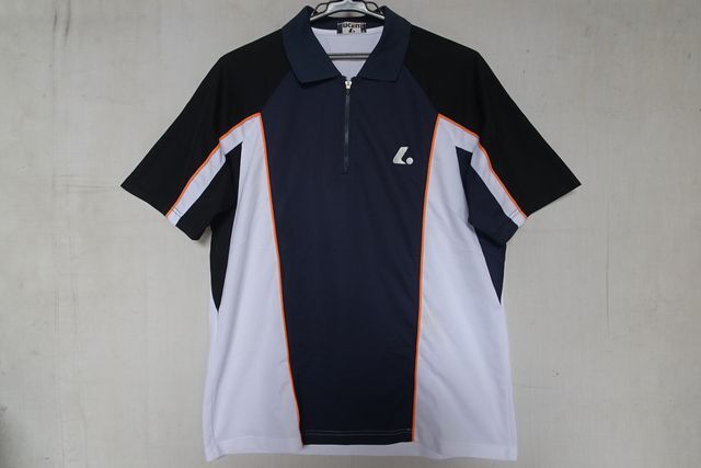 > LUCENT/ルーセント/テニス/半袖ポロシャツ/ユニフォーム/ハーフジップ/速乾性/白切替/オレンジパイピング/紺/ネイビー/Oサイズ(7/14R7)