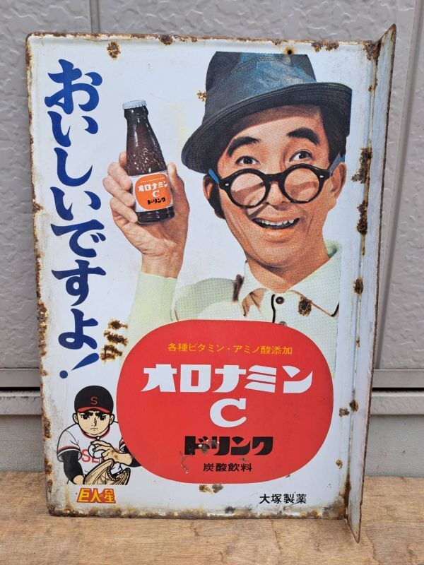 - 昭和レトロ オロナミンC 巨人の星 大村崑 大塚製薬 両面ホーロー看板 琺瑯看板 古い看板 当時物