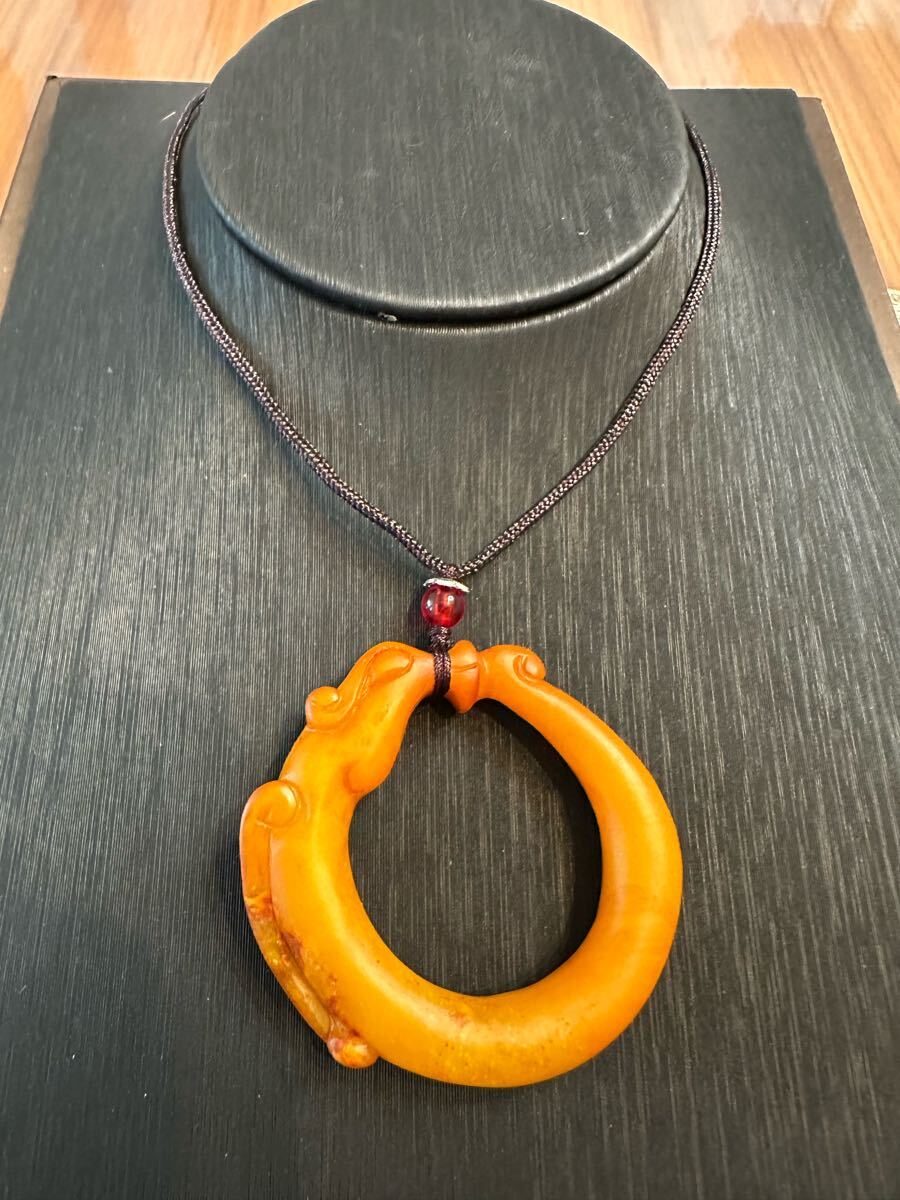- K-710天然玉石 老玉 河磨玉 龍ペンダント ネックレス 風水 お守り