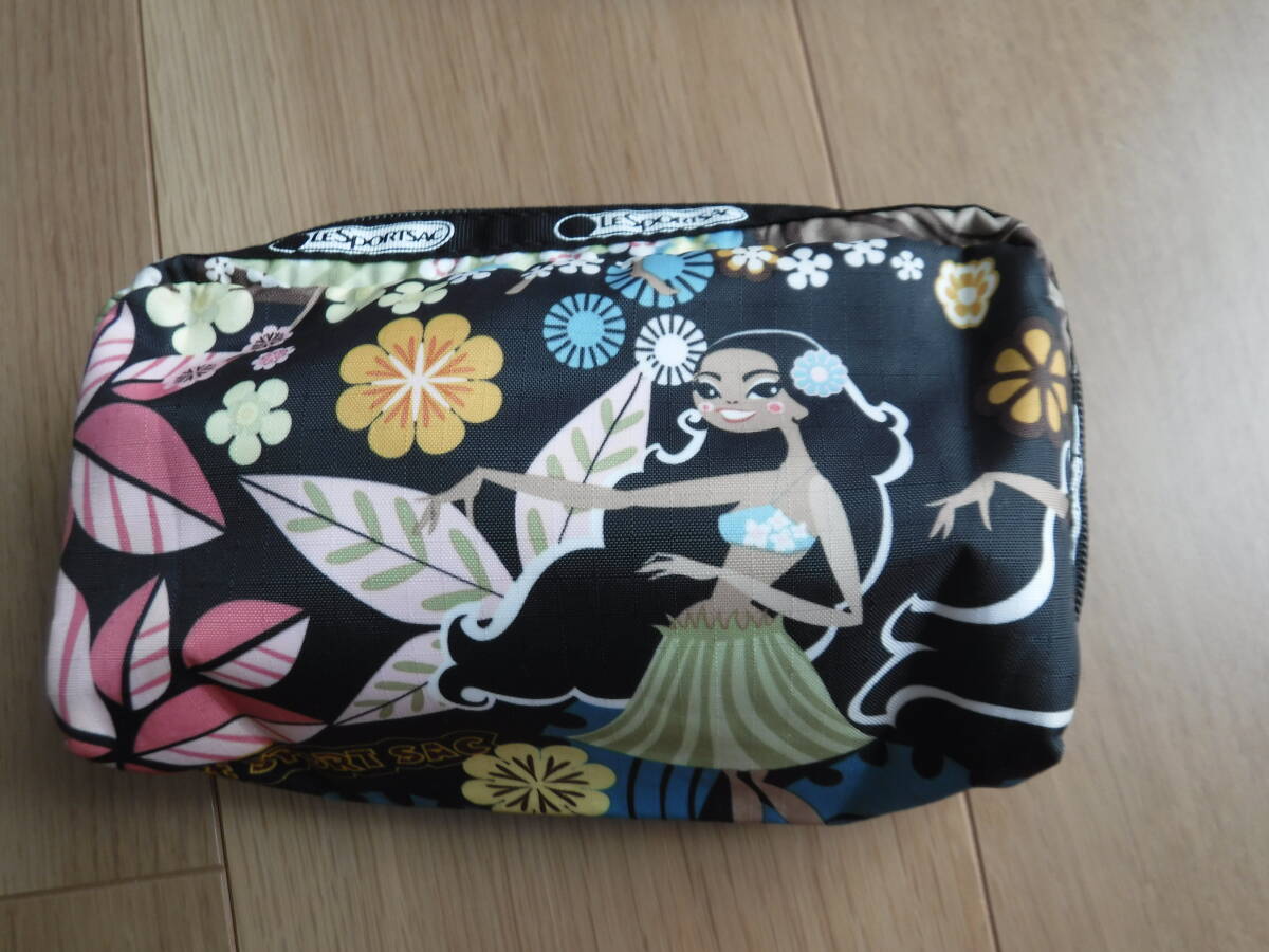 - 税不要特価 新品!LESPORTSAC レスポートサック ハワイ限定 ワヒネフラ フラガール ポーチ♪マチ有 ⑤