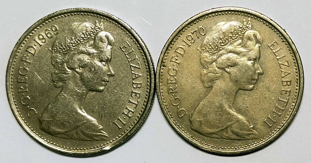 - エリザベス2世 1969年+1970年 5PENCS×2 ELIZABETH・Ⅱ 5ペンス硬貨 2枚ワンセット