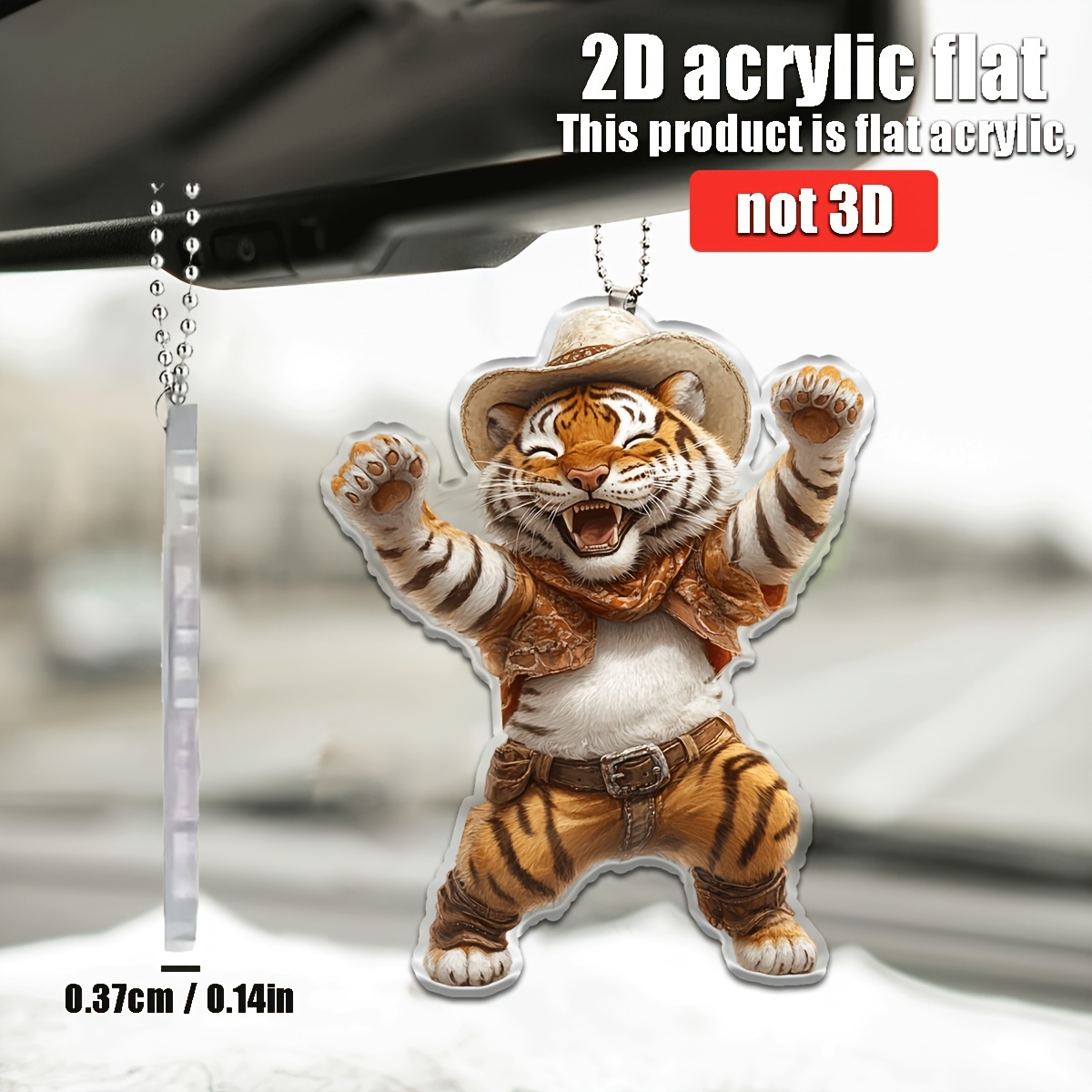 - キーホルダー 虎 カウボーイ 動物 平面 2D ウエスタン 踊るトラ アクリル 8cm おもしろ バックミラー 吊り下げ アニマル 車内 飾り t7348