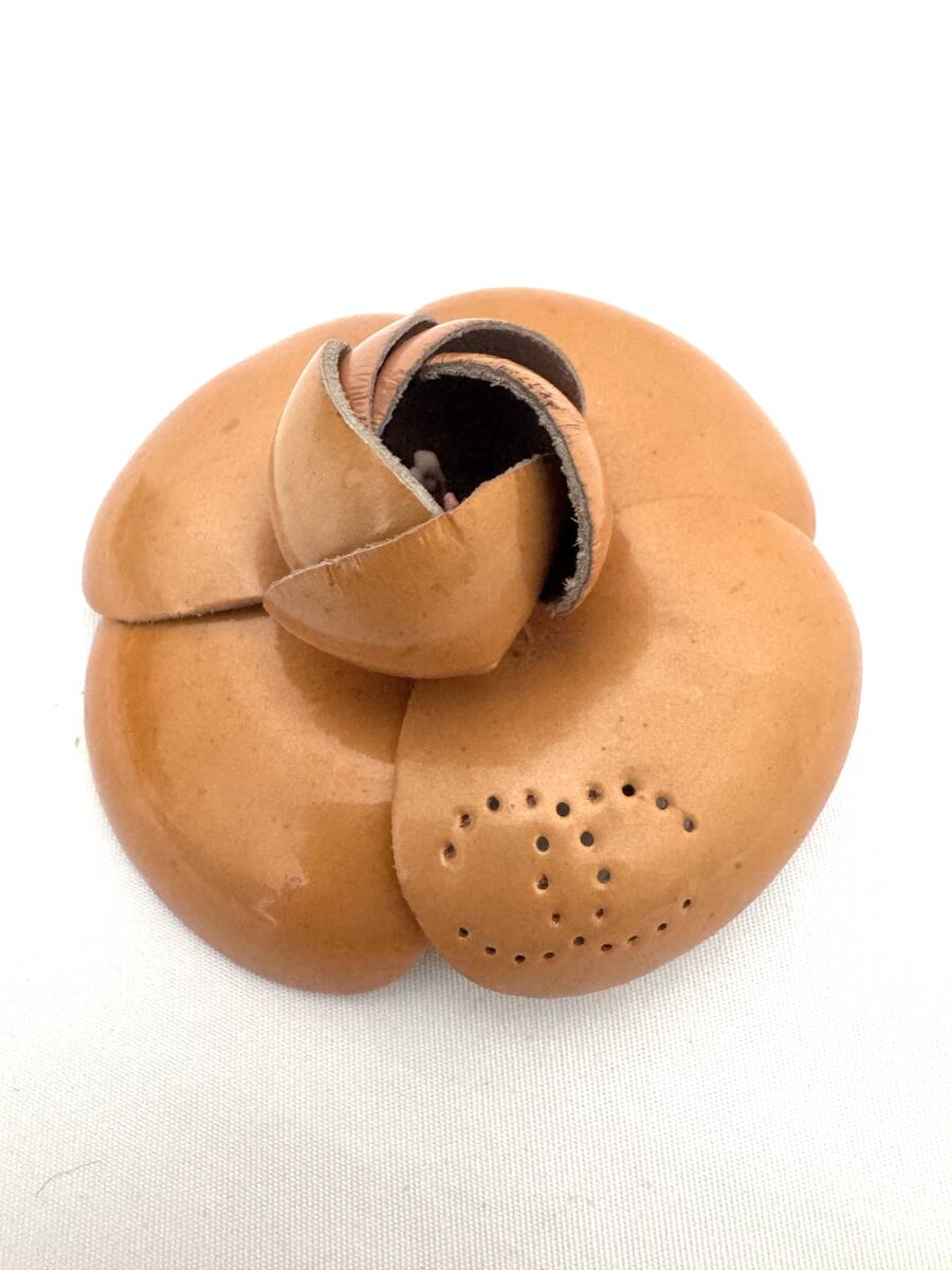 - 7G0616【本物保証】シャネル ブローチ カメリア エナメル パテント レザー ブラウン オレンジ ココマーク CHANEL
