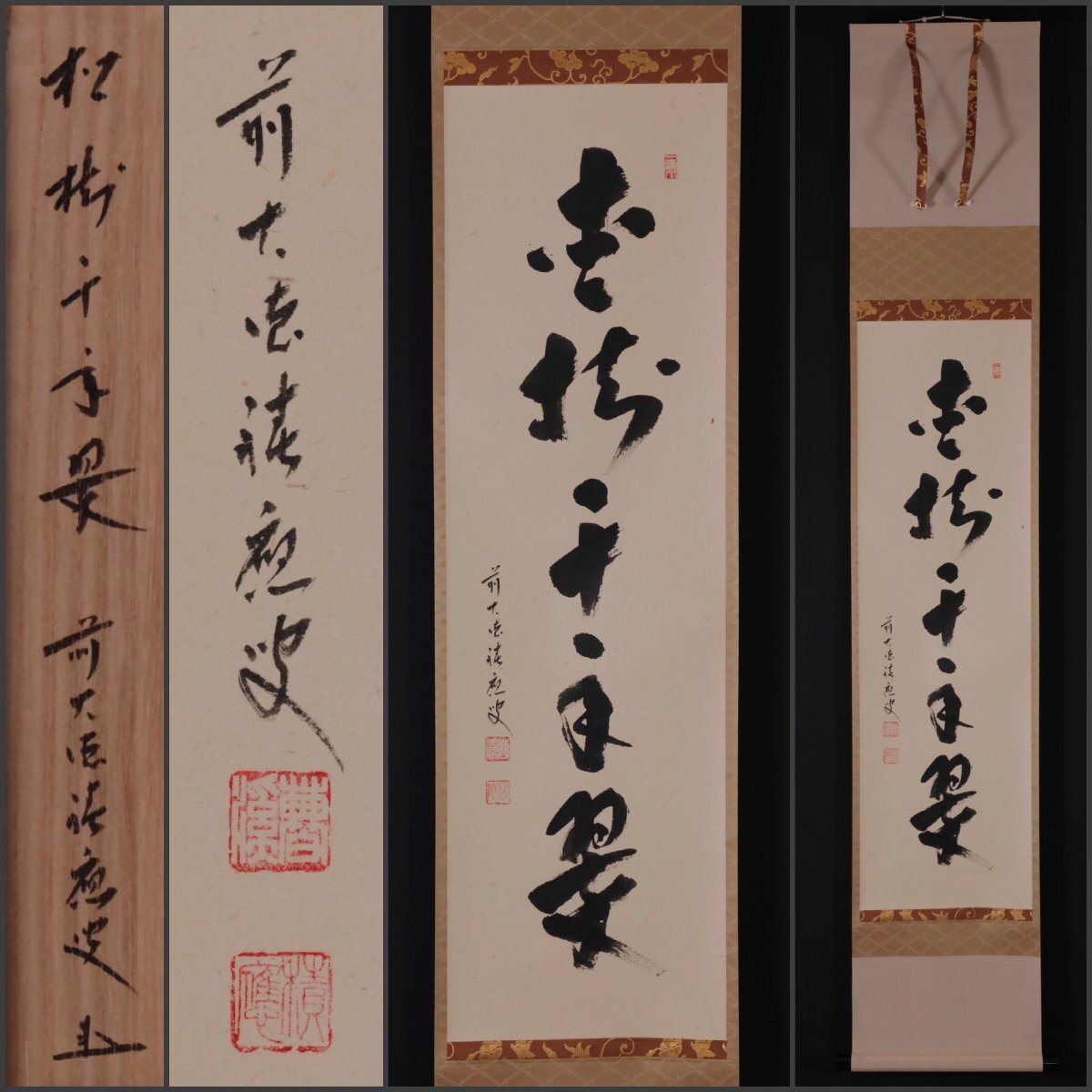 - 【模写】吉】12619 福本積応 書「松樹千年翠」 共箱 臨済宗 大徳寺派 招春寺住職 仏教 茶掛け 茶道具 禅語 掛軸 掛け軸 骨董品