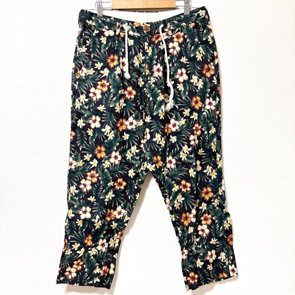 - リネン混◎夏コーデに!【HARE】ハレ クロップド パンツ 黒 ボタニカル 花 柄 サーフ リゾート 半端丈 メンズ フリーサイズ F/Y33932SS