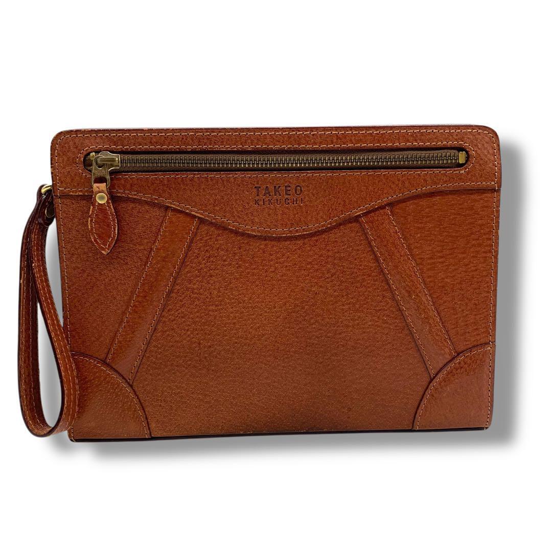 - タケオキクチ クラッチ バッグ ブラウン 茶色 レザー