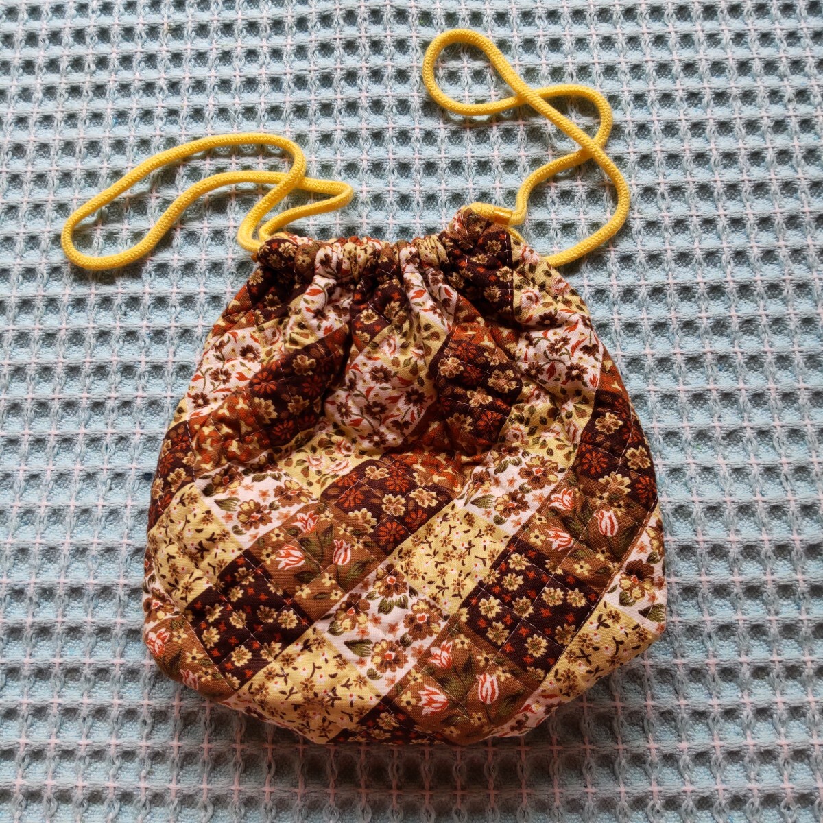 - 巾着袋 キルト地 花柄 きんちゃく袋 巾着
