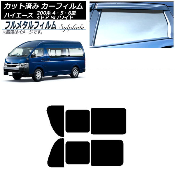 > カーフィルム トヨタ ハイエース 200系 4/5/6型 バン 4ドア スーパーロング/ワイド 2013年12月~ リア 2列目 左右開閉窓 プライバシーガ…