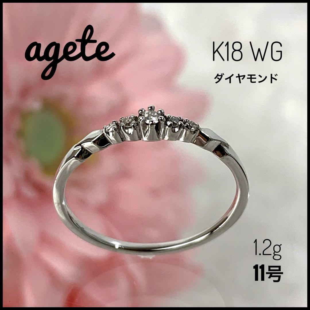 - アガット K18 WG ダイヤ0.04ct リング 11号 1.2g 【美品】