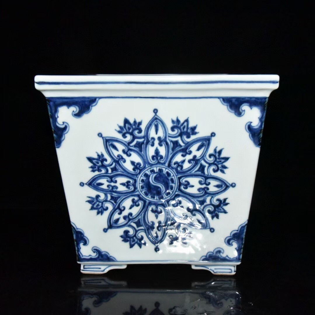 - 『館蔵珍品 明 宣德年製款 古陶瓷品 青花 八卦紋 四方盆 陶藝』稀少珍蔵品 古賞物 貴重物品 収蔵品 中国古美術 時代物 古董品