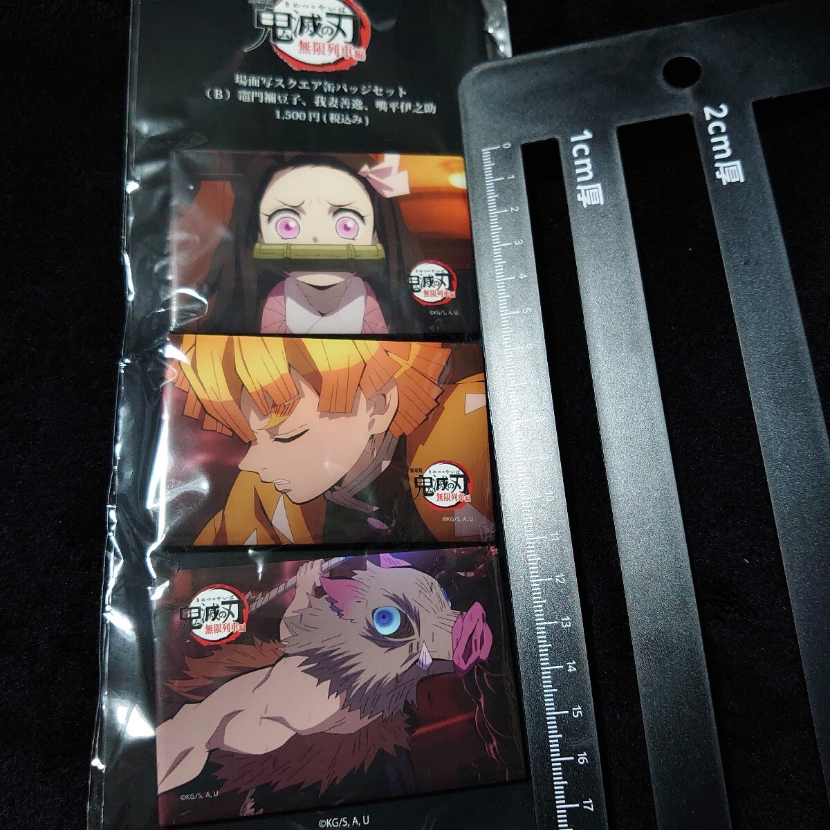 - 劇場版 鬼滅の刃 無限列車編 場面写スクエア缶バッジセット 竈門禰豆子 我妻善逸 伊之助