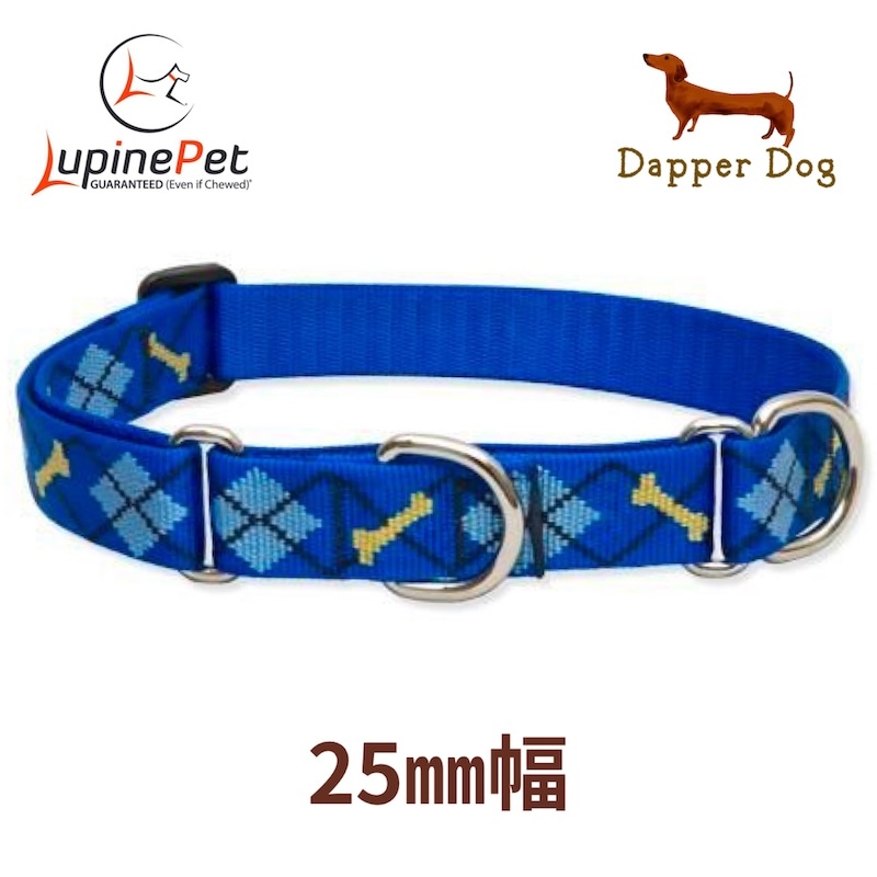 - ハーフチョークカラー・Mサイズ・25mm幅 ダッパードッグ柄 38-55cm LUPINEルパイン アメリカ製 軽量 丈夫