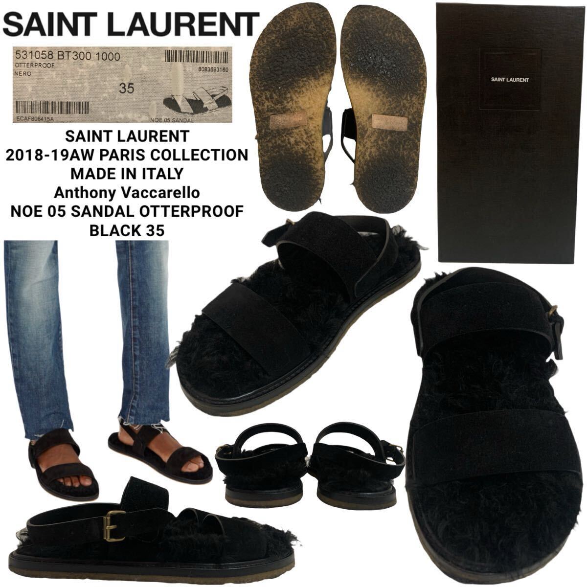 > SAINT LAURENT サンローラン MADE IN ITALY イタリア製 2018AW アンソニーヴァカレロ期 NOE 05 SANDAL ボアスエードレザーサンダル 35 BLK