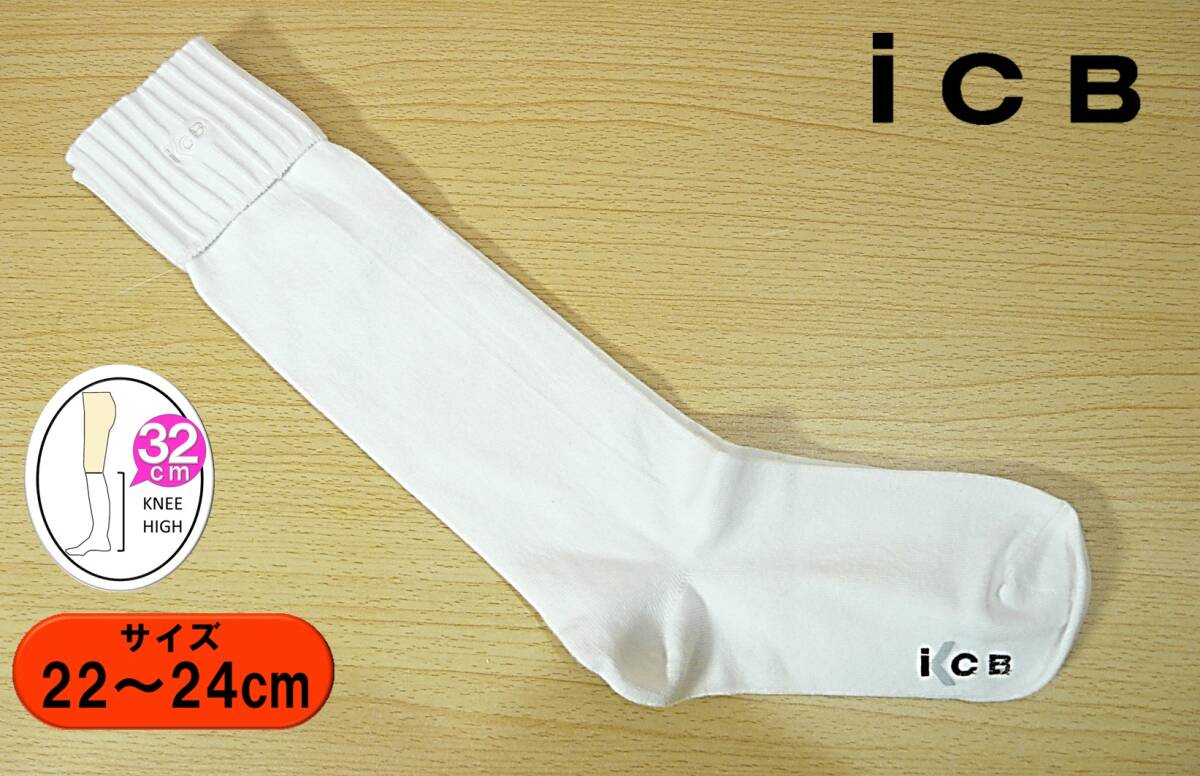 > 【レッグウェア★未使用品】アツギ◆iCB◆平編み 中厚手 ロゴ刺繍 折返し◆白 ハイソックス◆スクールソックス◆22-24cm◆32cm丈◆