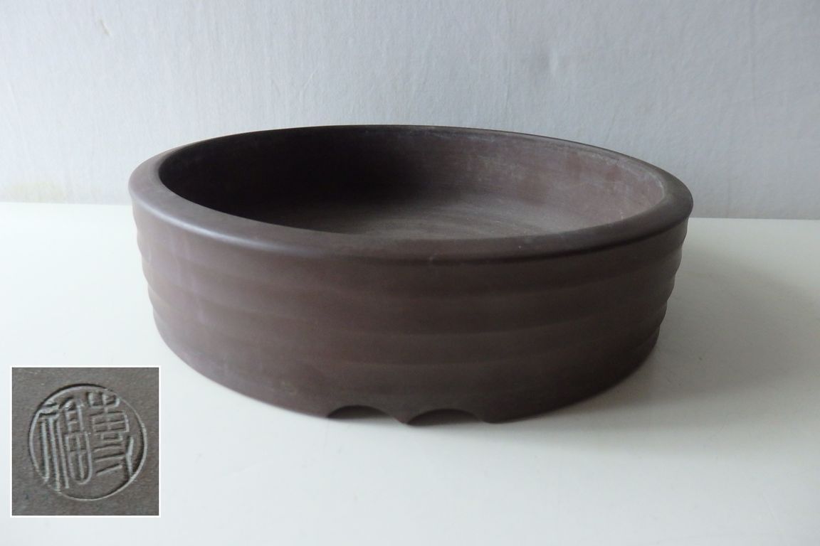- ⑳時代盆栽鉢 〇福印 紫泥 丸鉢 /検・ 中國古玩 朱泥 白泥 盆景 宣興