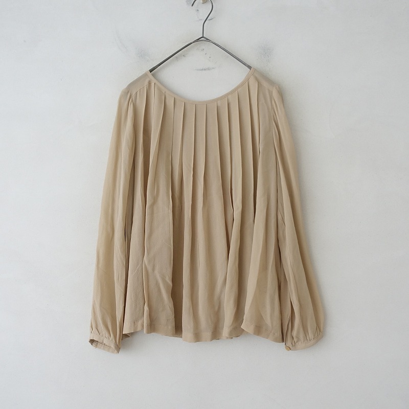- リゼッタ Lisette *シルクプリーツブラウス*絹ベージュノーカラーシフォンタックフレアプルオーバー薄手(25-2506-480)【81G52】