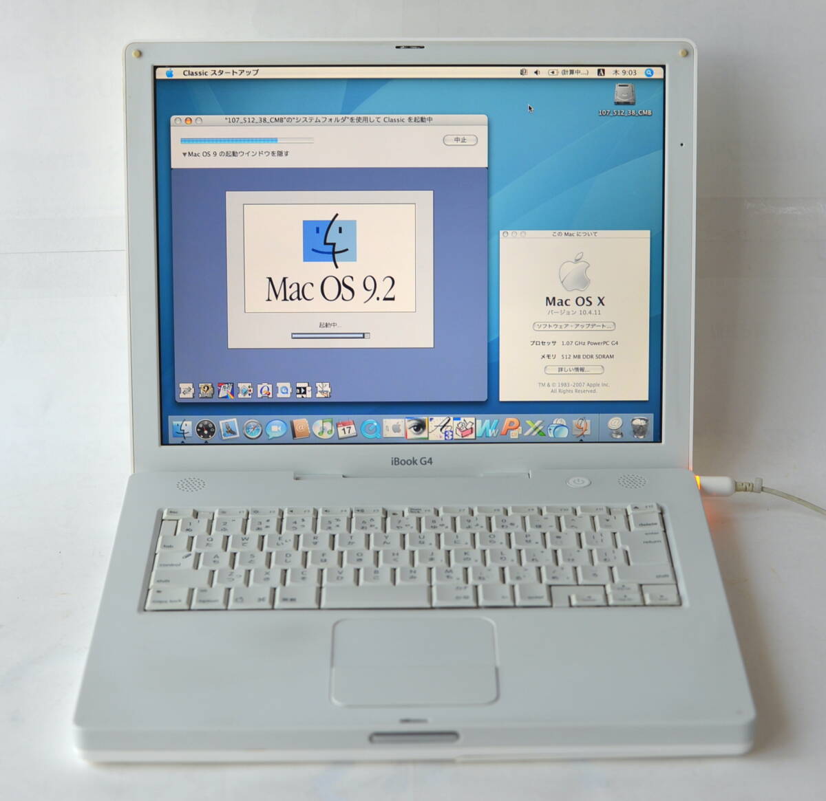 - iBook G4 14inch 1.07GHz 512MB/38GB/Combo 美 OSX10.4.11&0S9.2.2 クラッシック環境