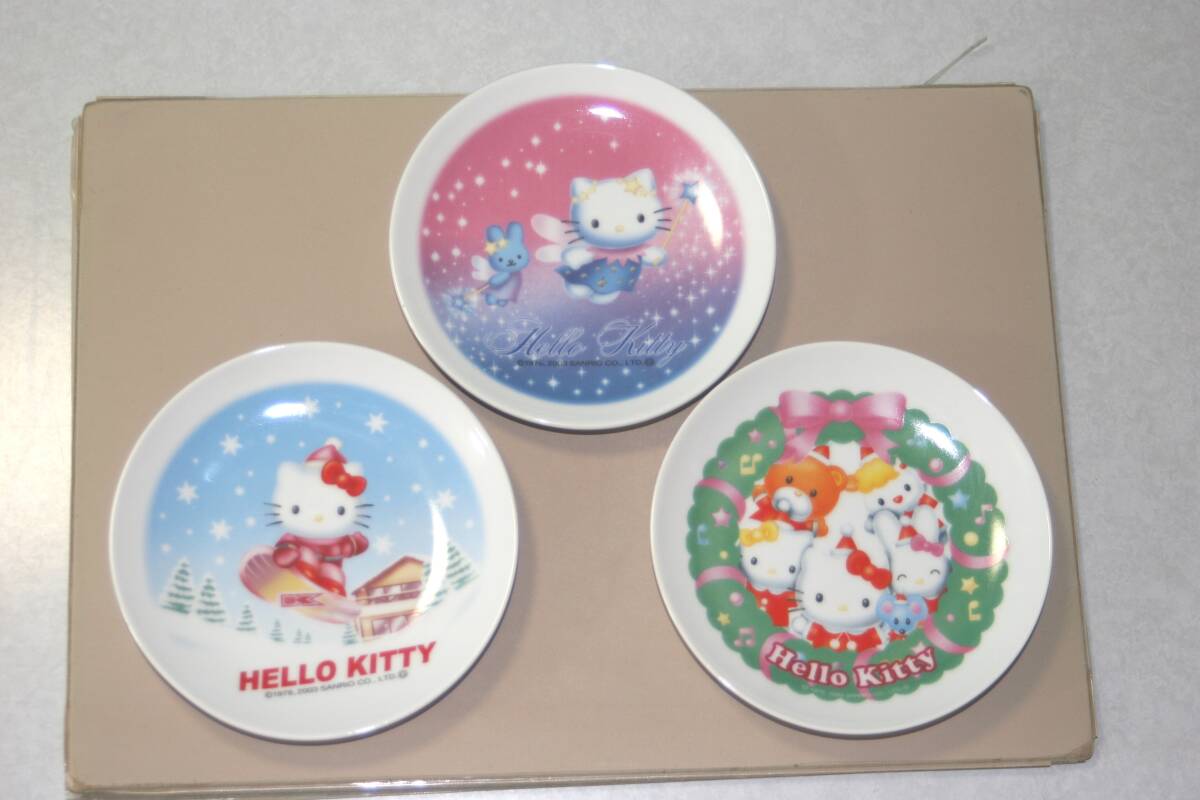 - サンリオ ハローキティ 小僧寿司 2003年 クリスマスプレート 3枚セット 皿 絵皿 陶器 フェアリー,ボーダー,ミミィ 友達 キャシー,ジョーイ