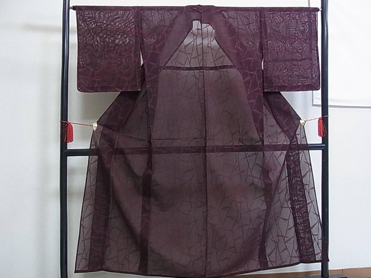 - 着物おきな2★未使用品 夏物 紗紬 枝葉文 正絹 美品★r2249