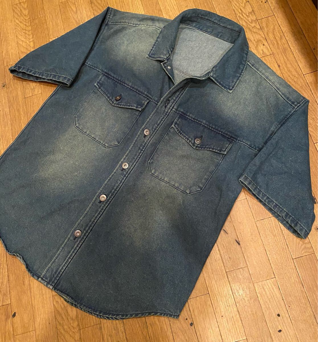 - 良品デニムジーンズダンガリーシャツジャケットカバーオールワークvintagewashダメージビッグシルエットオーバーサイズルーズシルエット