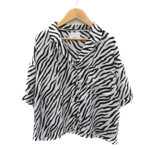 > エゴイスト EGOIST シャツ ブラウス 半袖 オープンカラー ゼブラ柄 黒 ブラック /YK23 レディース