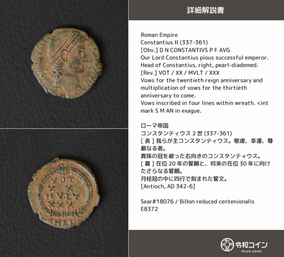 > *[令]コンスタンティウス2世 古代ローマコイン【詳細説明カード付】センテニオナリス・ビロン貨 ギリシャ 銀貨[8372]7n6