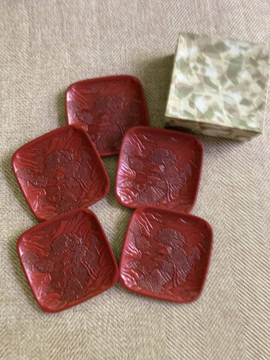 - 角皿 中国 絵皿 新品 5枚セット 縦横約14cm