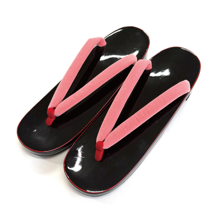 - Lサイズ 黒塗桐下駄 女性 履物 レディース 浴衣 ゆかた げた ゲタ 和装小物 夏着物 ピンク 鼻緒 大きい