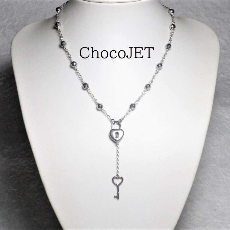 - シルバービーズのステンレス・キーロックネックレス ハート型錠鍵銀色