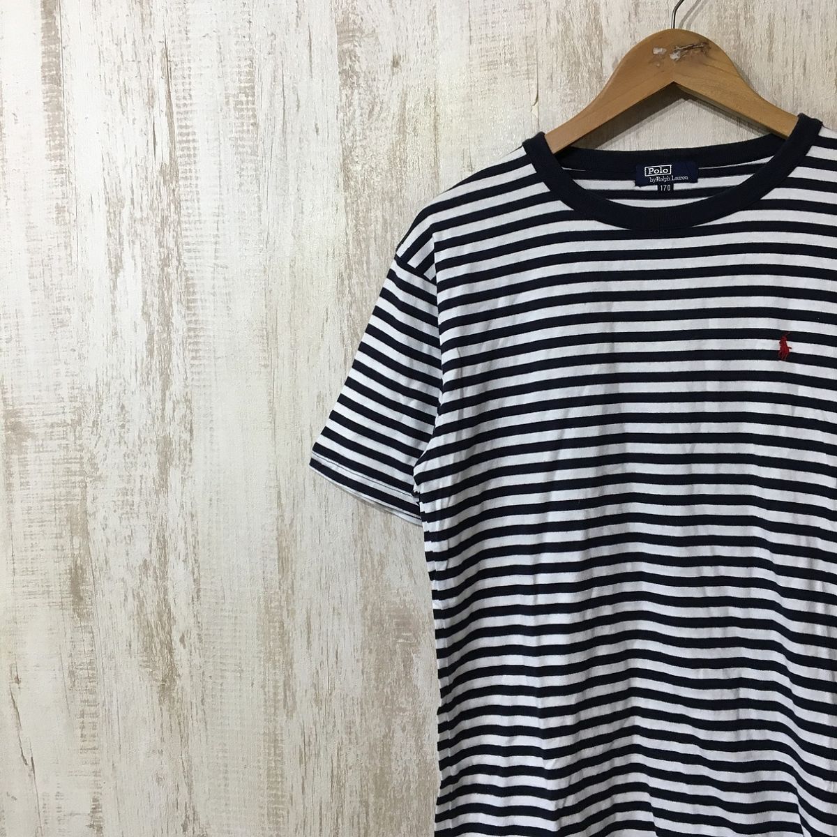 > 639☆【ヴィンテージ アメカジ ボーダーTシャツ】RALPH LAUREN ラルフローレン 紺 白 170