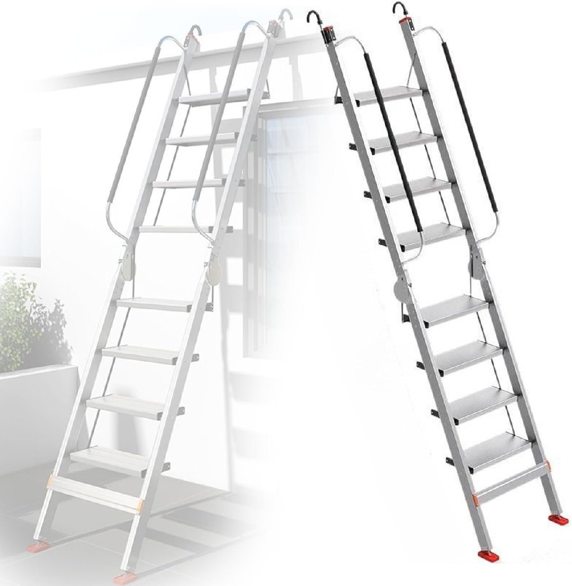 - 折りたたみ屋根裏はしご、180-220cmアルミニウム合金緊急はしごアームレスト&フック付き、幅18cmペダル、耐荷重330ポンド