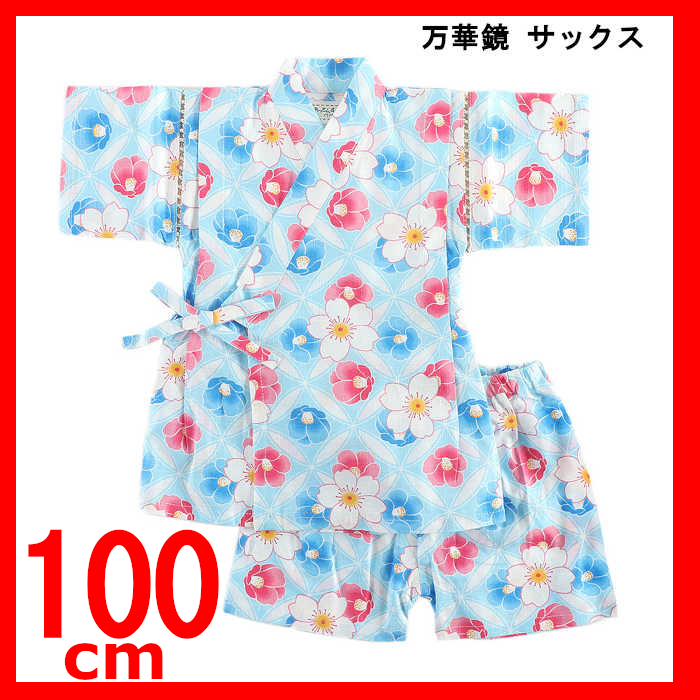 > 新品 甚平 100 キッズ 女児 ベビー 上下セット パジャマ おしゃれ 万華鏡柄 日本製生地 コットン100% かっこいい かわいい 部屋着