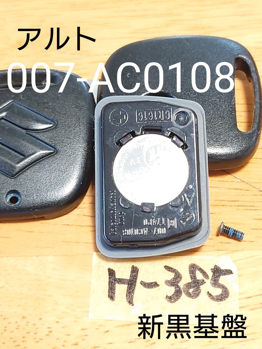 > H-385 スズキ 純正 キーレス 1ボタン【新黒 基盤】【007-AC0108】アルト/ワゴンR/マツダ/キャロル等 周波数OK/荷物追跡あり/ 黒基盤