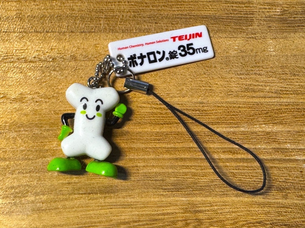 - 非売品 ボナロンくん ストラップ 骨キャラクター ノベルティ TEIJIN TEIJIN35mg Bonalon 製薬会社 ノベルティ 非売品 マスコット