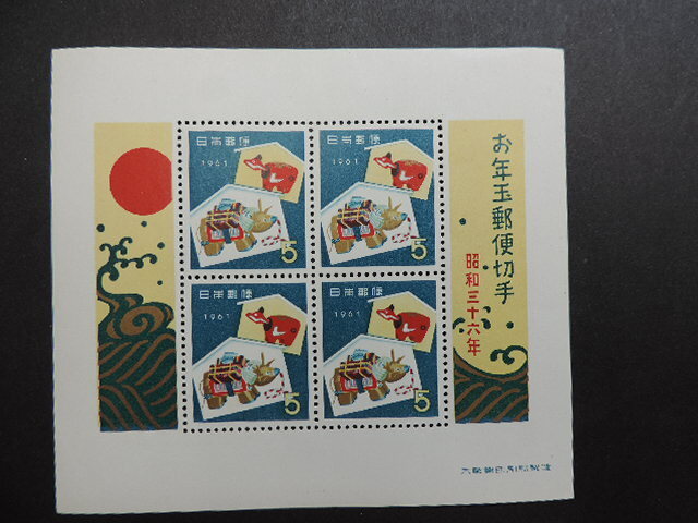 > ★昭和36年 お年玉年賀切手★ あかべこ 1960年 5円切手×4枚 小型シート 新品・未使用