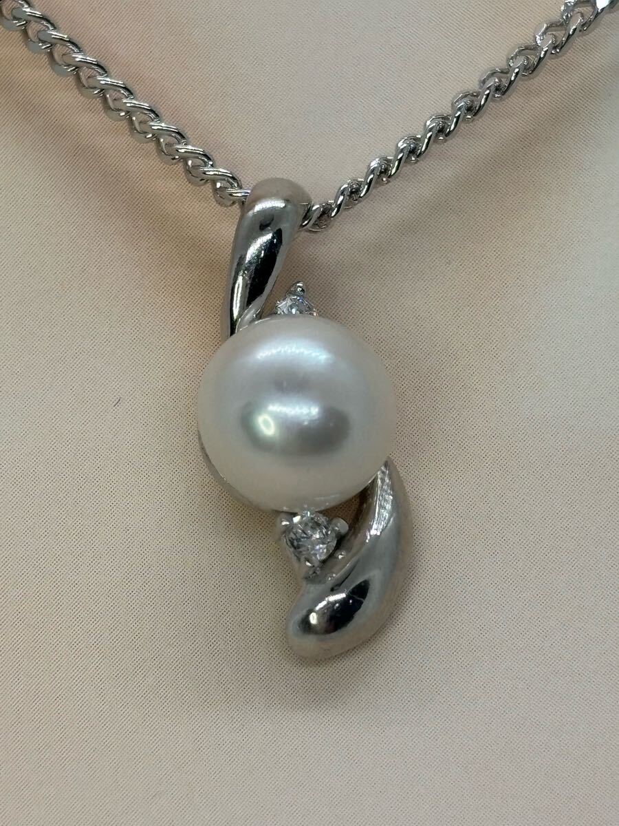 - 本パール真珠ホワイトカラー925シルバー 9.65mm可愛いネックレス(743)