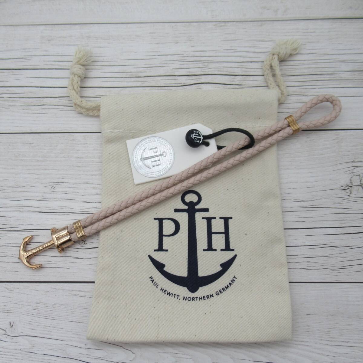 > 【新品未使用】Paul Hewitt ポールヒューイット Lサイズ ピンク ゴールド アンカー ブレスレット レザー 革 ステンレス 錨 アクセサリー
