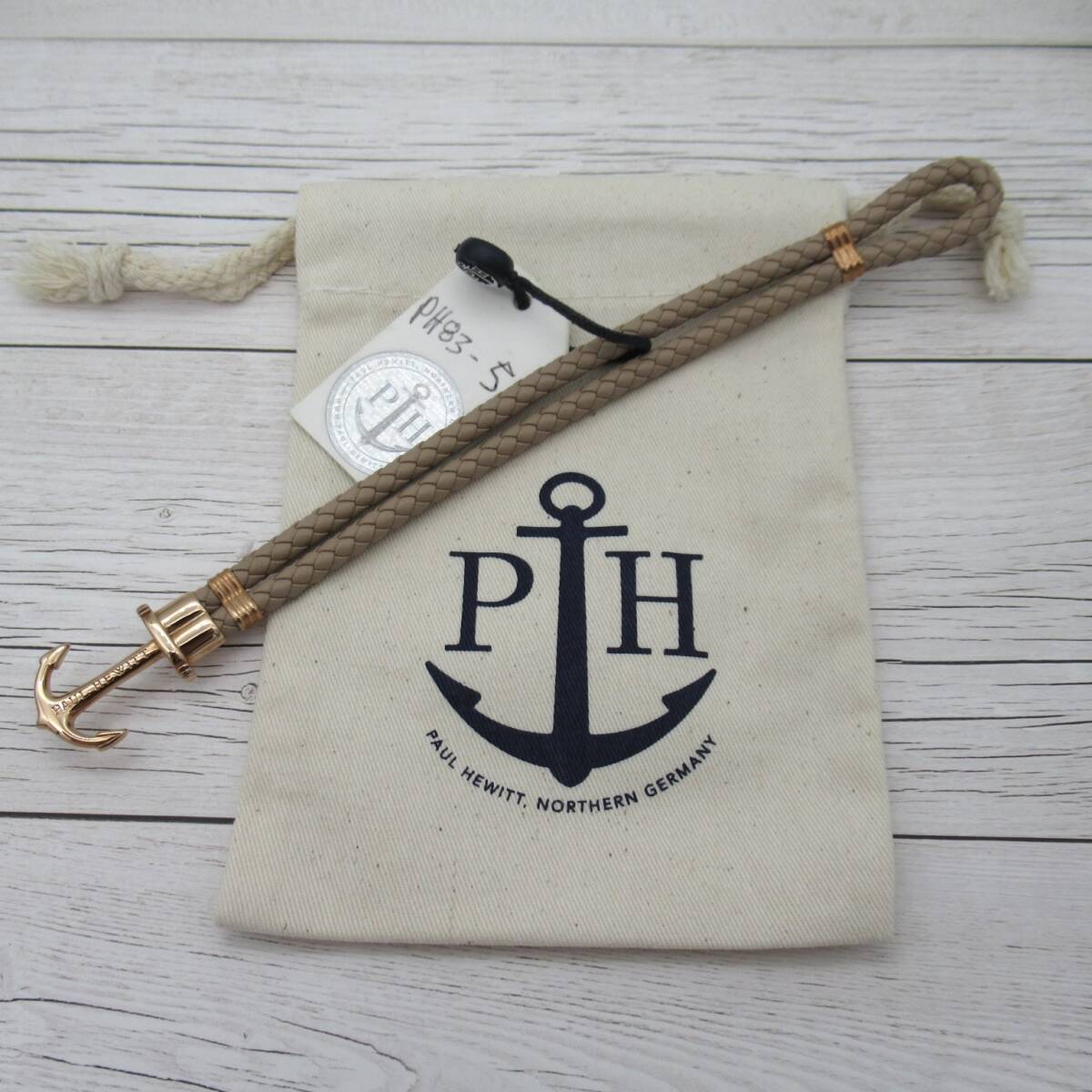- 【新品未使用】Paul Hewitt ポールヒューイット Mサイズ ヘーゼルナッツ アンカー ブレスレット レザー 革 ステンレス 錨 アクセサリー