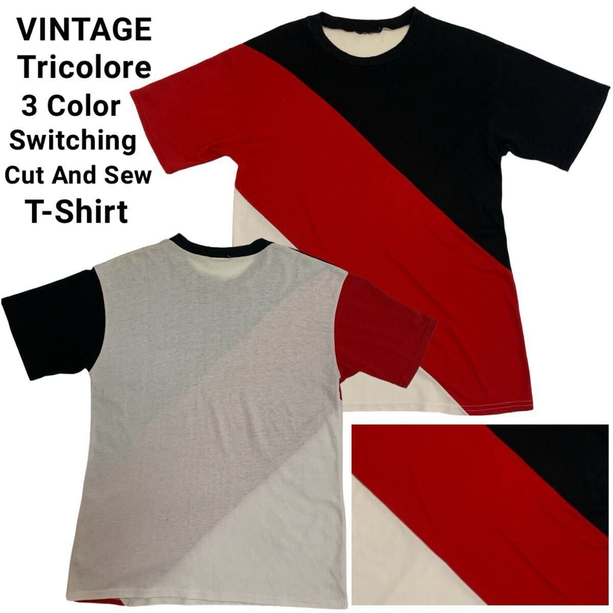 - VINTAGE ヴィンテージ トリコロール 3色カラー切替 半袖カットソー 半袖Tシャツ トップス ブラック レッド ホワイト M〜L位 アーカイブ