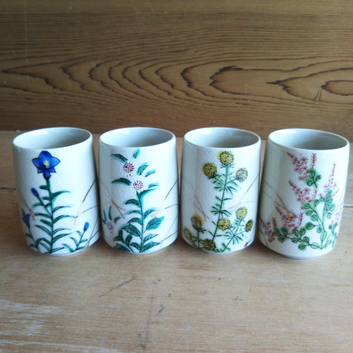 - 25072115 九谷焼岳山 湯呑野草4客セット 茶器 九谷焼 岳山 野草柄