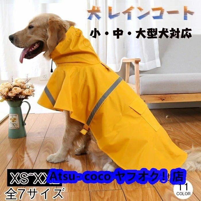 - 犬用 レインコート ペット レインコート 小型犬 中型犬 大型犬 犬服 ドッグウェア ペット服 雨具 梅雨対策 反射材付き☆11色選択可/1点