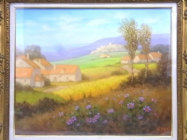 > e09265 真作保証 油彩 風景画 ロナルド・グレッグ 「ヴォ―クリューズ風景」 12F 額縁 同梱不可
