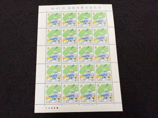 - 95、日本切手 第47回 国民体育大会 41円×20枚 シート 未使用