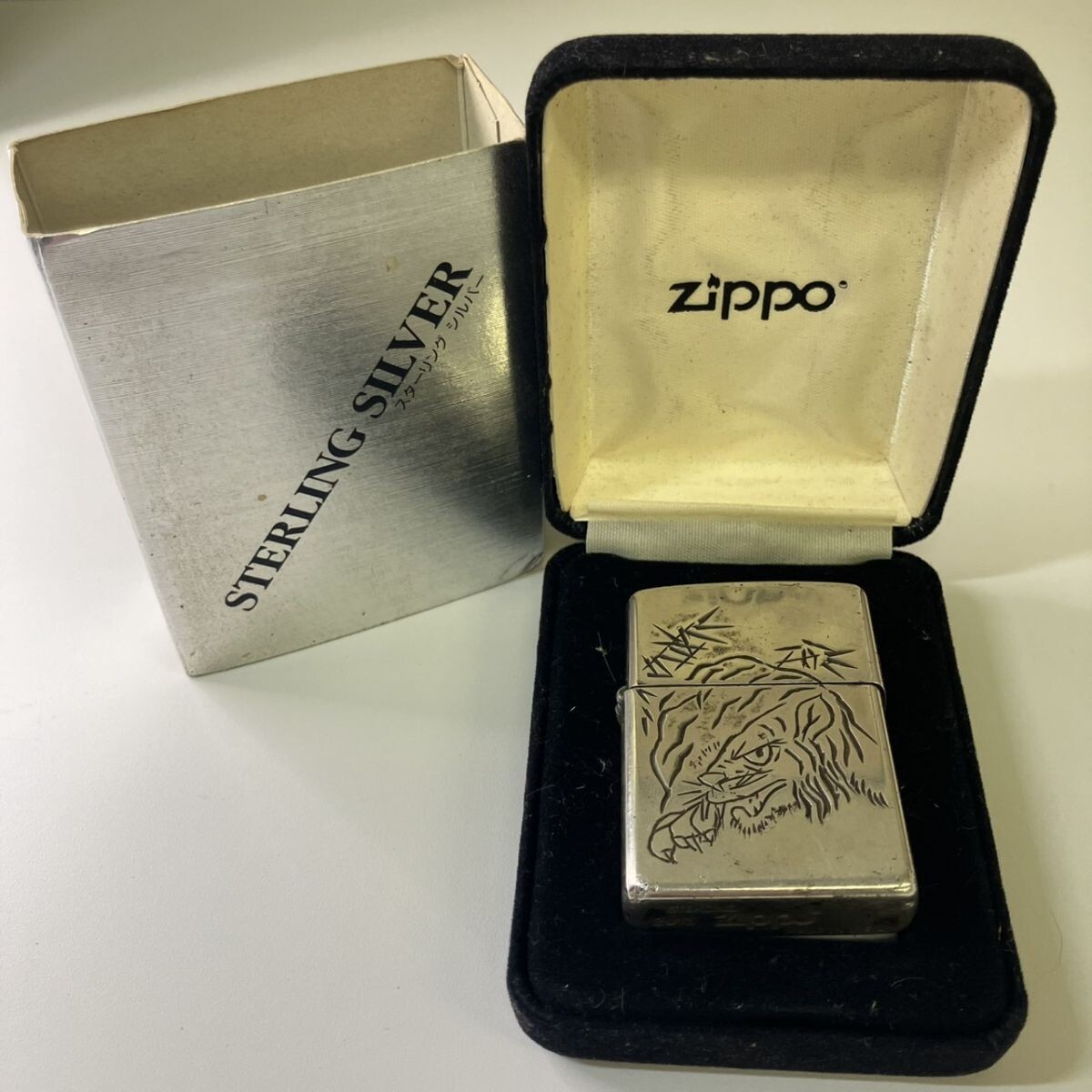 - G014-I75-457 Zippo ジッポ STERLING スターリング シルバー オイルライター 2013 火花あり 箱付き 虎 タイガー 手彫り 喫煙具 HA
