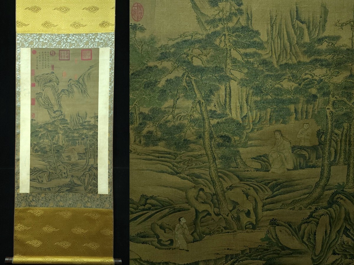 - 中国書画「宋 燕文貴 山水人物図」肉筆絹本 掛け軸 墨寶妙品 書画立軸 巻き物 古美術 旧蔵出