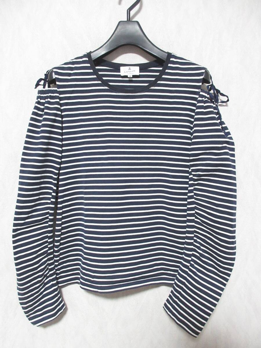 - LANVIN en Blue ランバンオンブルー ショルダースリット ボーダー カットソー Tシャツ レディース 38 ホワイト ネイビー yg7335